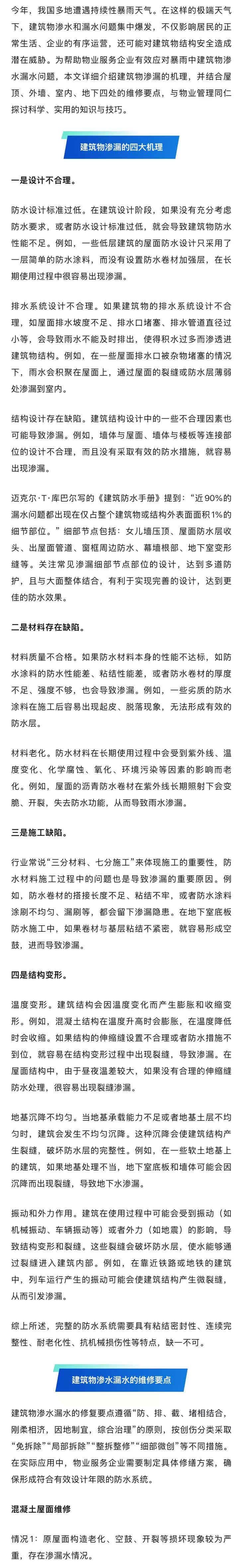建筑物渗漏的四大机理与维修要点